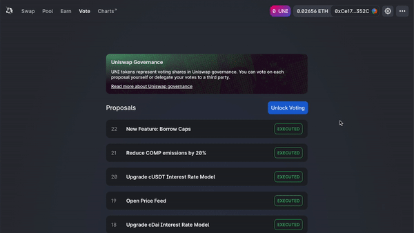 Set up an account on gov.uniswap.org to start shaping and participating in protocol governance